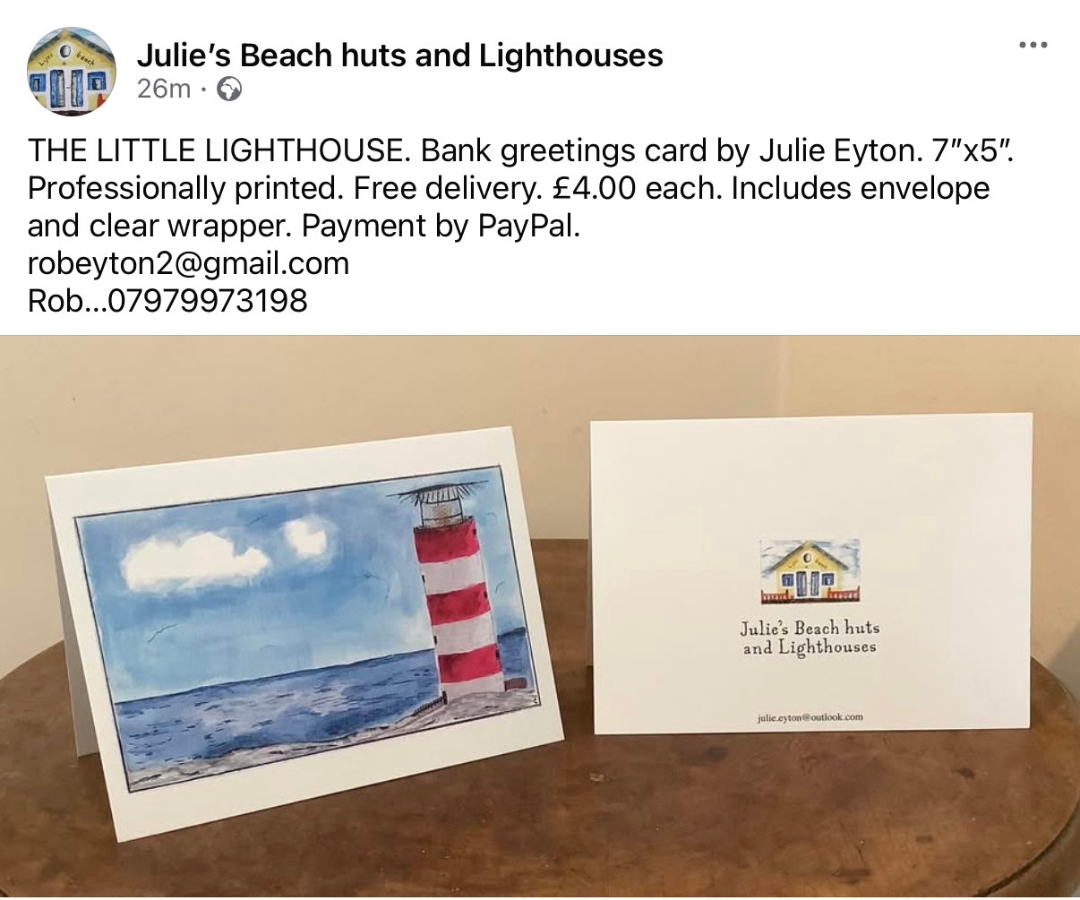 THE LITTLE LIGHTHOUSE.5” x 7”. From original watercolour paintings by the artist Julie Eyton.